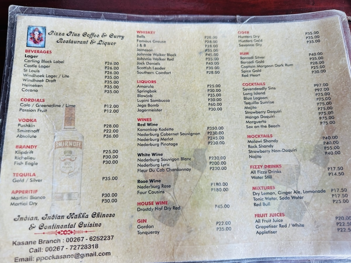 Nous avons mangé à Kasane au Pizza Plus Coffee & Curry.