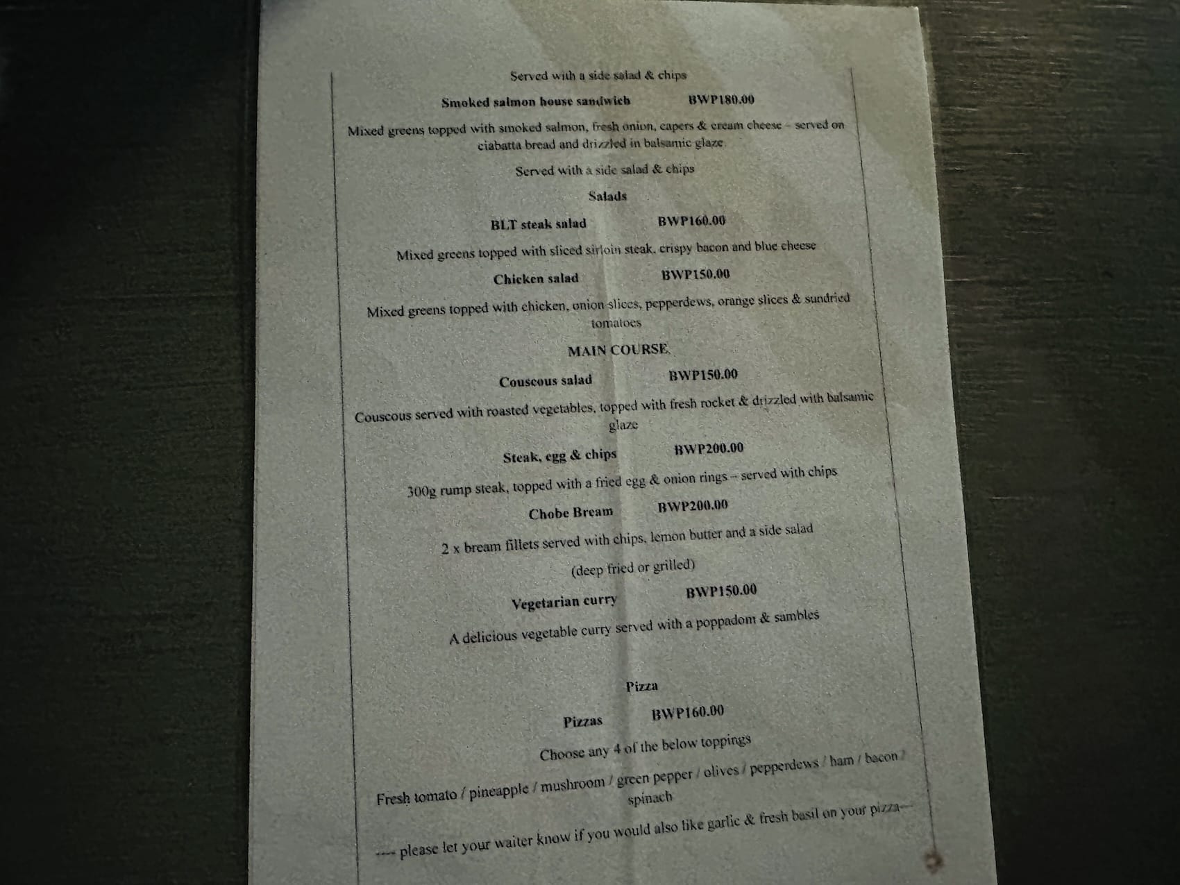 Si nous n’étions pas en DBB, le repas avec les 3 verres de vin aurait coûté 900BWP, soit environ 57€